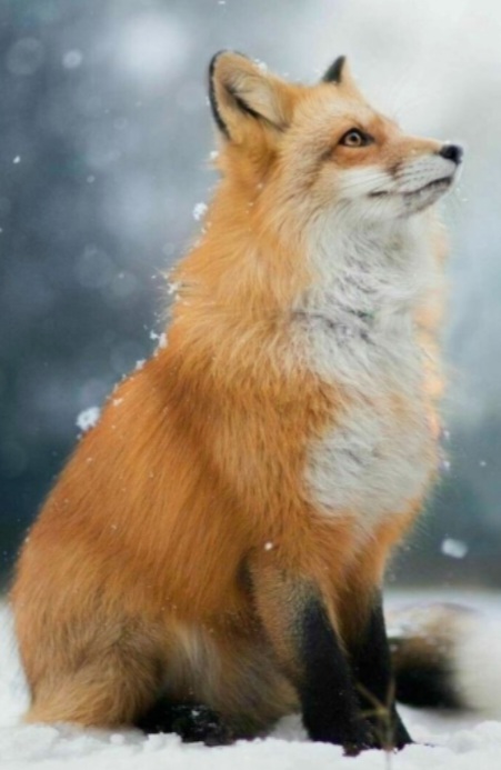 여우가 먹이를 땅에다 파묻고 나서 힐끔